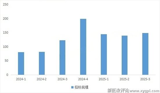 据众成数科统计,2024年第一季度至2025年第三季度,国内县域医共体招投标金额整体呈现稳步增长态势。2024年初起步较为平稳,随后在政策推动与基层医疗能力建设的持续投入下,招投标活动逐步活跃。