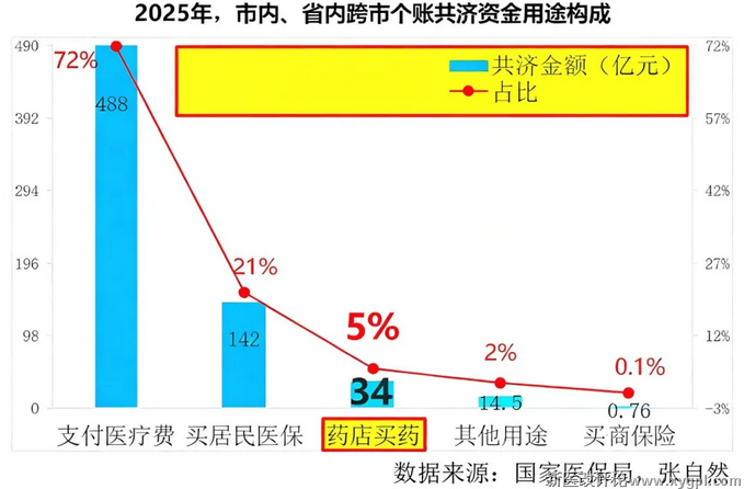 2025年作为职工医保个人账户共济政策全面落地的关键一年,国家医保局最新数据显示,全年共济总人次达4.64亿、总金额687.7亿元,资金流向呈现鲜明的“医疗为主、药店为辅”特征——仅5%用于药店购药,超90%流向医疗机构医疗费支付及居民医保代缴。这一变革对医保结算占总营收36.7%的湖北零售药店而言,既是结构性冲击,更是转型倒逼的重要契机。
