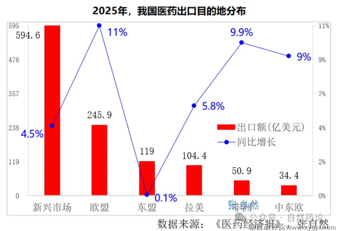 2025年,在中美上演激烈贸易战、全球地缘政治日益复杂的情况下,我国医药出口仍取得增长,出口超千亿,达1113.41亿美元,同比增长3.41%。