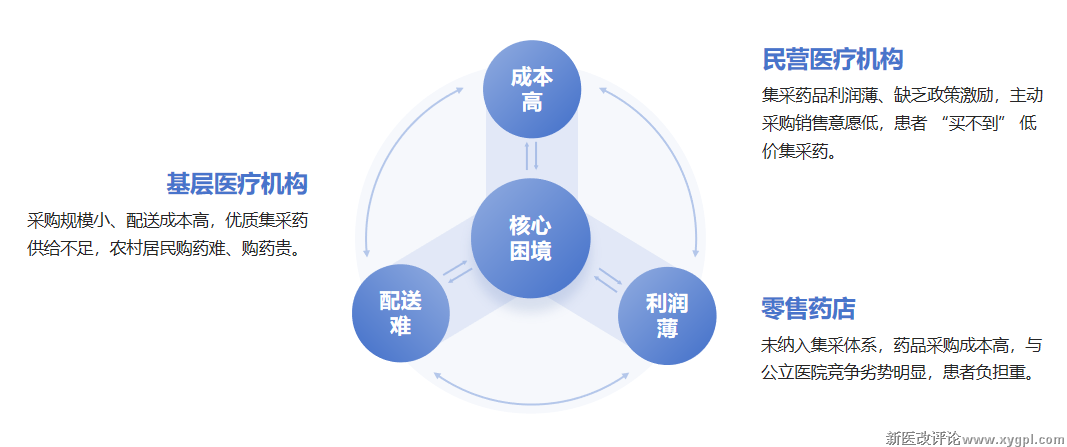 以零售药店、村卫生室、民营医院为主体,开展集采药品"三进"行动,目的是通过政策引导与资源倾斜,解决零售药店 "不愿卖"、村卫生室 "供不上"、民营医院 "用不起" 的问题,引导有关药品价格回归合理水平,减轻群众用药负担。