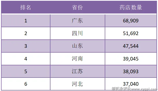药店数量居于第四、五、六位则是河南39,045家、江苏38,093家、河北37,040家,均不超过4万家。