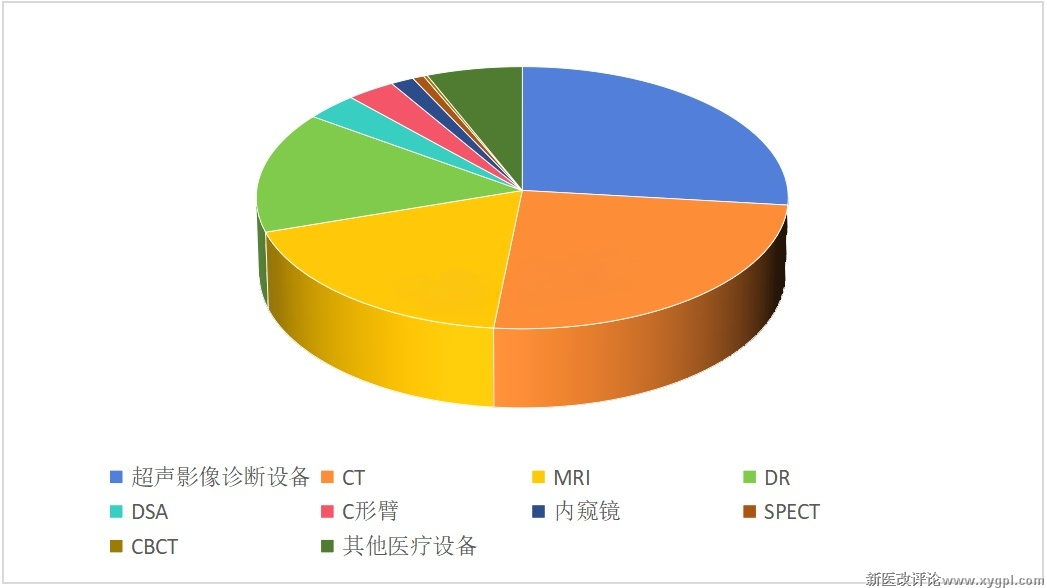 从中标的产品类型来看,CT、MRI、DR等医用成像器械在各省大规模设备更新中标规模最大,三者合计中标金额占比近72%。