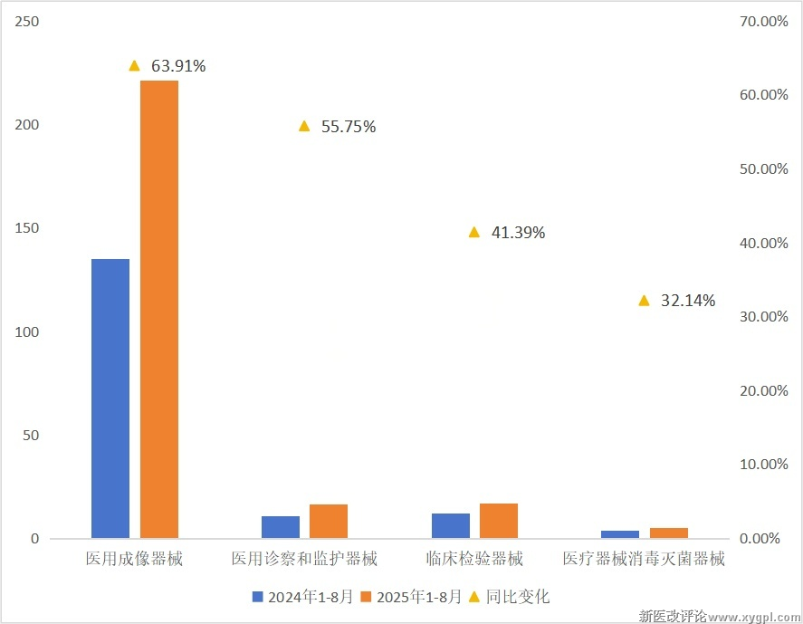 其中,医用成像器械成各地县域医共体的首要采购目标,采购规模同比增长64.91%。医用诊察及监护器械、临床检验器械等其他重点领域的市场规模也显著增加。