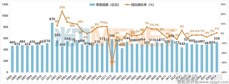 总体分析:2025年9月中国实体药店零售规模(药品+非药)为538亿元,同环比均有上升,行业震荡调整向好