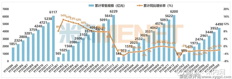 2025年1-9月中国实体药店市场累计零售规模及变化趋势