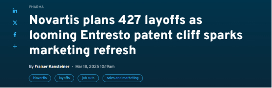 诺华推行重组计划已逾三年,目前仍在对其组织架构进行调整。9月,诺华在美国总部新泽西州解雇58名员工;3月,裁员427人。