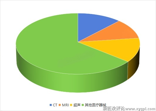 从中标的产品类型来看,CT、MRI、超声影像诊断设备在各省县域医共体中标规模最大,三者合计中标金额占比近36%。