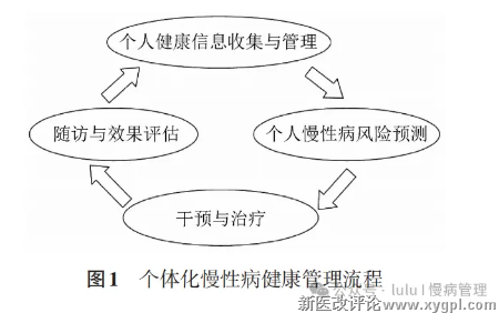 以个人健康信息收集为基础,通过风险预测划分人群(一般个体/高危个体/患者),制定个体化干预计划,并通过随访评估持续优化管理流程(闭环循环)。