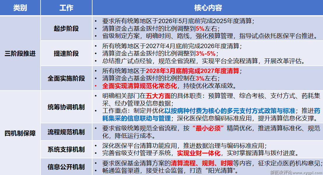 2025年12月15日,国家医疗保障局发布了《医保基金清算提质增效三年行动计划》,通过"三阶段推进+四机制保障",分步骤解决医保基金清算周期长、效率低、不平衡等问题: