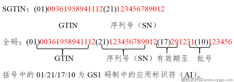 GTIN与序列号按GS1码的编码规则组合后,成为SGTIN( Serialized Global Trade Item Number),是可追溯的最小长度字段,成为药品“唯一身份证”。