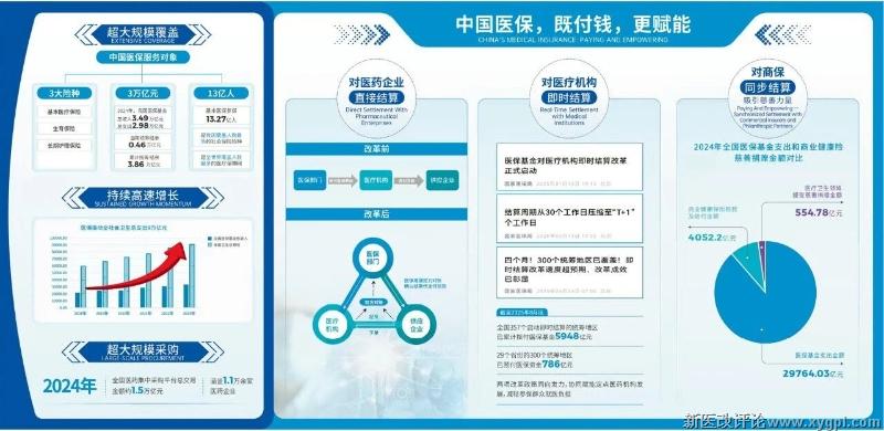 聚焦支付结算,打造助推发展新动能。发挥医保大数据优势,助推医保支付方式改革。按病种付费是基于医保医疗海量诊疗信息、结算数据,通过大数据聚类统计出来的医保付费方式。为提升医保支付的信息化、标准化水平,国家医保局基于全国统一的医保信息平台开发了支付方式功能模块,实现病种付费地区间、医疗机构间可比较、可分析。同时,完善医保支付配套机制,推动特例单议线上申请、评审、结算全流程,提高工作效率,有效支撑新药新技术在临床应用。建立数据工作组,定期向定点医疗机构发布数据,通过“亮家底”,实现“强赋能”,数据自动抓取、自动推送,增进医保医疗理解互信。通过建立和优化基本医保与定点医药机构的即时结算、与医药企业的直接结算以及与商业健康保险的同步结算等,提升医保基金结算效能。高效推进即时结算,将“按月结”转变为“即时结”,将医保部门与定点医药机构的结算周期从以往的30个工作日逐步压缩到不超过20个工作日,部分地区实现“次日结”。加快推进直接结算,目前已有29个省(自治区、直辖市)开展医保对集采中选企业的直接结算,货款结算时间从原来的至少6个月缩减为交货验收合格后次月底前。探索开展同步结算,在确保“原始数据不出域、数据可用不可见”前提下,充分利用隐私计算等数据安全防护技术,实现医保大数据赋能商业健康保险发展,满足人民群众多元化、差异化医疗保障需求。