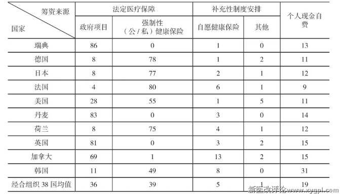 表2 典型国家卫生支出按筹资来源划分的构成