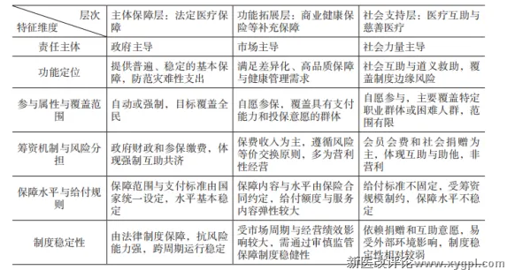 本文在吸收既有研究成果的基础上,结合中国政策语境与制度实践,突出责任主体与功能定位两个核心维度,将多层次医疗保障体系划分为主体保障层、功能拓展层和社会支持层三个层次。