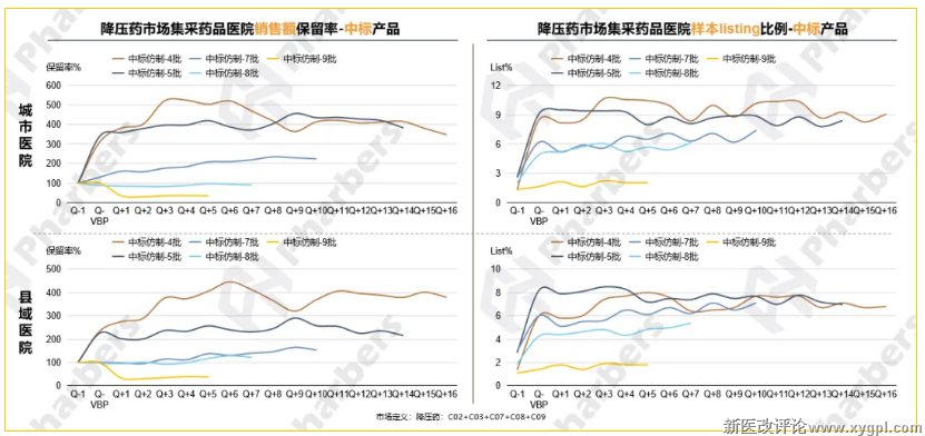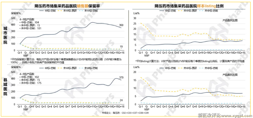 图6-降压药市场各批次集采药品医院销售额保留率&样本listing比例