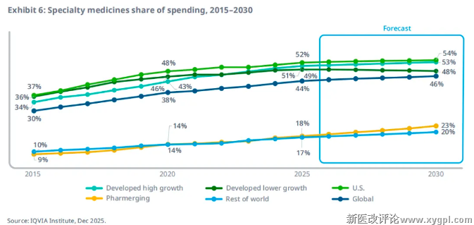 到2030年,特药将占全球药品支出的46%,其中主要发达市场对这类产品的支出占比将过半。