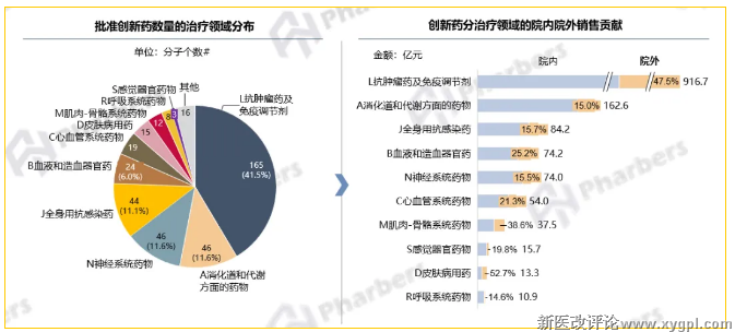 图2-创新药治疗领域分布及院内外销售情况