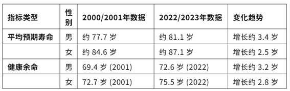 1. 核心统计数据与趋势(平均寿命与健康寿命)