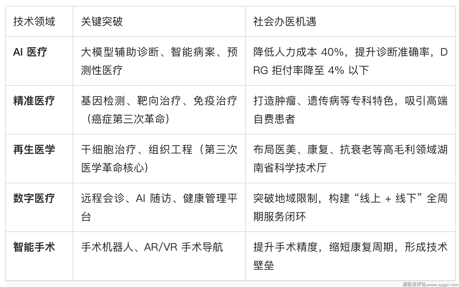 1. 核心技术矩阵(社会办医的 "弯道超车点")