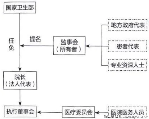 2000年,中组部、人事部、卫生部《关于深化卫生事业单位人事制度改革的实施意见》提出,卫生事业单位实行并完善院(所、站)长负责制,并强调要充分发挥党组织的政治核心和监督保证作用,实行产权制度改革的试点单位,经批准可探索试行理事会(董事会)决策制、监事会监管制等新型管理制度。